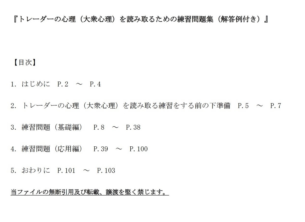 『トレーダーの心理(大衆心理)を読み取るための練習問題集(解答例付き)』